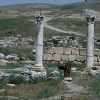 Jordan. Pella (Tabaqat Fahl), the West Church, three columns in its atrium colonnade were put back in their original positions by the DoA, the church was built 6th Century