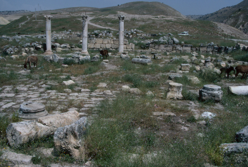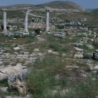 Jordan. Pella (Tabaqat Fahl), the West Church, three columns in its atrium colonnade were put back in their original positions by the DoA, the church was built 6th Century