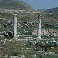 Jordan. Pella (Tabaqat Fahl), the West Church, three columns in its atrium colonnade were put back in their original positions by the DoA, the church was built 6th Century