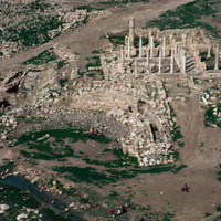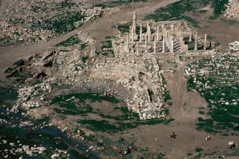 Jordan. Pella (Tabaqat Fahl), general view of the Umayyad housing and the Roman Odeon (foreground) and the Byzantine Civic Complex Church above it
