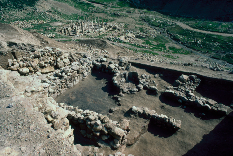 Jordan. Pella (Tabaqat Fahl), general view of the Umayyad housing and the Roman Odeon (foreground) and the Byzantine Civic Complex Church above it