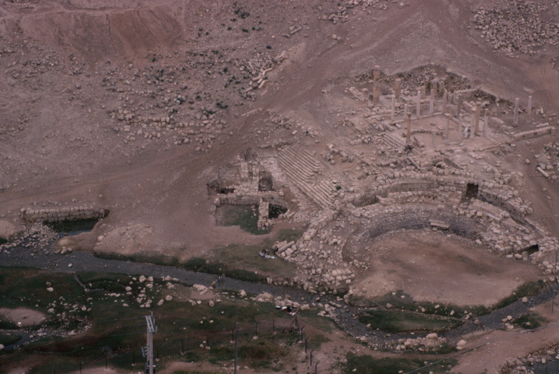 Jordan. Pella (Tabaqat Fahl), the Roman Odeon (foreground) and the Byzantine Civic Complex Church above it