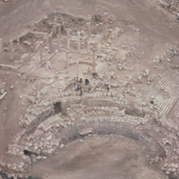 Jordan. Pella (Tabaqat Fahl), the Roman Odeon (foreground) and the Byzantine Civic Complex Church above it