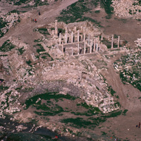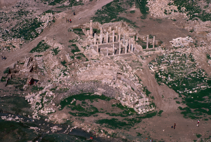 Jordan. Pella (Tabaqat Fahl), the Roman Odeon (foreground) and the Byzantine Civic Complex Church above it