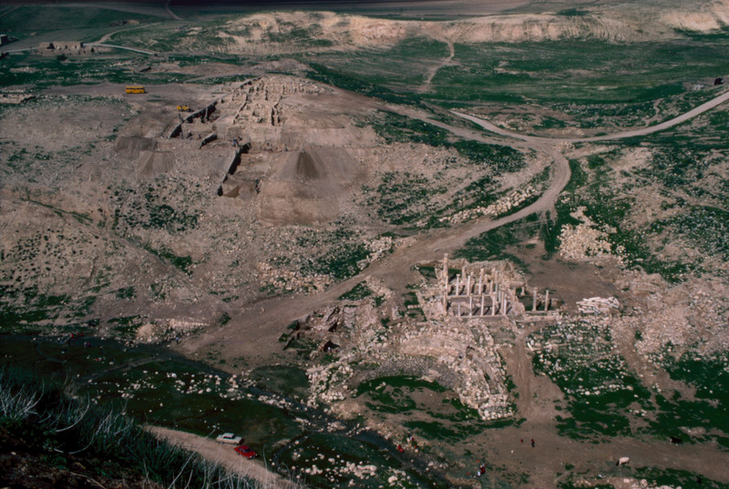 Jordan. Pella (Tabaqat Fahl), general view of Pella from Tell Husun, showing the Civic Complex Church and Odeon and the Umayyad housing