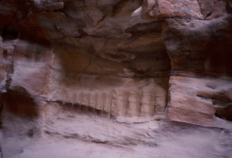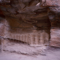 Jordan. Petra, Siq, niche with ten god blocks (betyls)