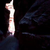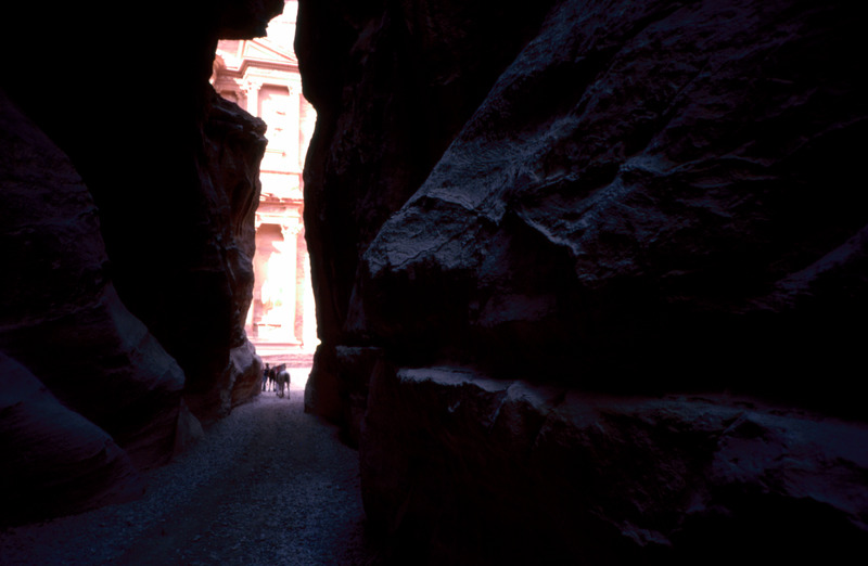Jordan. Petra, Khaznet Far'oun (Treasury) through end of Siq