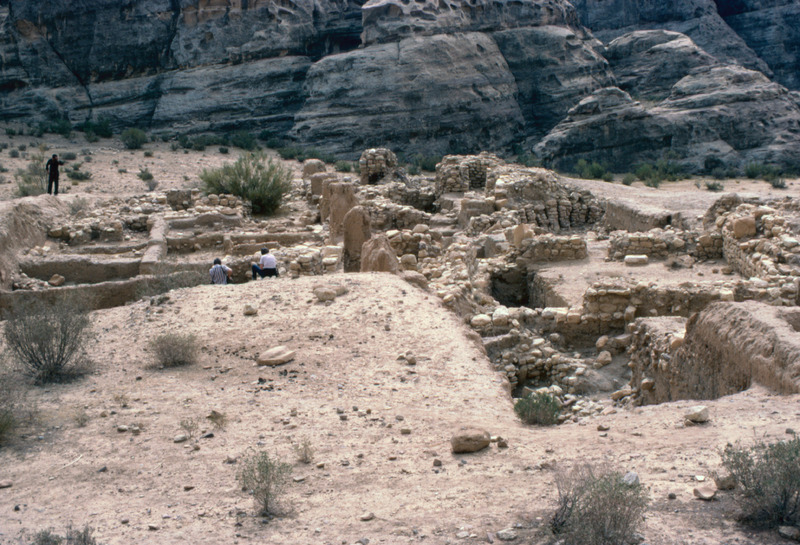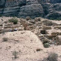 Beidha: The excavated Stone Age village of Beidha, one kilometer south west of Siq al-Barid, Beidha,the white one' in Arabic, dates from the period at the end of the Stone Age known as the Neolithic era, when people in the Near East making the slow, gradual transition from small groups of nomadic hunter-gatherers to settled villagers who domesticated animals and cultivated plants. It was excavated by Mrs. Diana Kirkbride. (Khouri, R. "Petra: a guide to the capital of the Nabataeans" 1986)