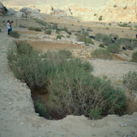 Beidha: The excavated Stone Age village of Beidha, one kilometer south west of Siq al-Barid, Beidha,the white one' in Arabic, dates from the period at the end of the Stone Age known as the Neolithic era, when people in the Near East making the slow, gradual transition from small groups of nomadic hunter-gatherers to settled villagers who domesticated animals and cultivated plants. It was excavated by Mrs. Diana Kirkbride. (Khouri, R. "Petra: a guide to the capital of the Nabataeans" 1986)