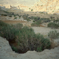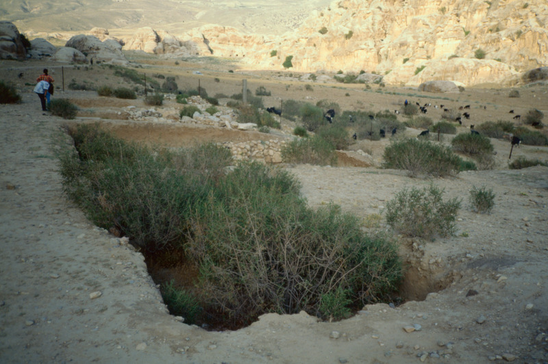 Beidha: The excavated Stone Age village of Beidha, one kilometer south west of Siq al-Barid, Beidha,the white one' in Arabic, dates from the period at the end of the Stone Age known as the Neolithic era, when people in the Near East making the slow, gradual transition from small groups of nomadic hunter-gatherers to settled villagers who domesticated animals and cultivated plants. It was excavated by Mrs. Diana Kirkbride. (Khouri, R. "Petra: a guide to the capital of the Nabataeans" 1986)