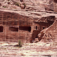 Jordan. Petra, Nabataean tombs, back of the Theater
