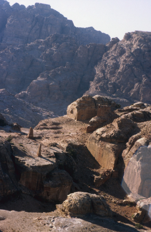 Jordan. Petra, the two obelisks of the high place on the Zibb 'Atuf (aerial)
