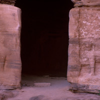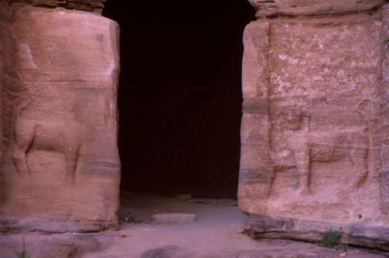 Jordan. Petra, Wadi ad-Deir, Lion Triclinium, doorway