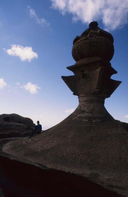 Jordan. Petra, ad-Deir, the great urn, sculpted in the round, that tops the cupola the tholos