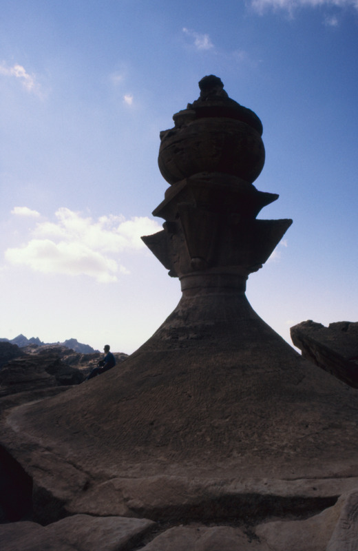 Jordan. Petra, ad-Deir, the great urn, sculpted in the round, that tops the cupola the tholos