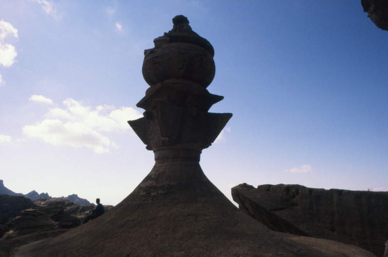 Jordan. Petra, ad-Deir, the great urn, sculpted in the round, that tops the cupola the tholos