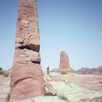 Jordan. Petra, the two obelisks of the high place on the Zibb 'Atuf