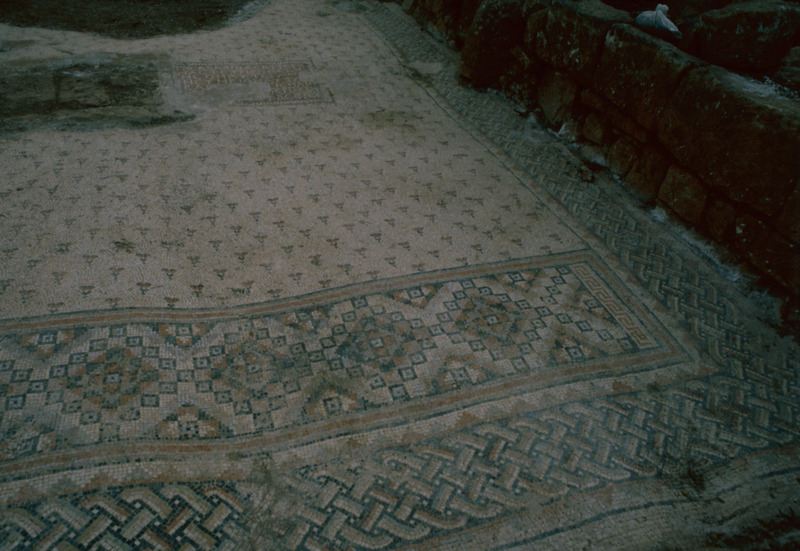 Jordan. Tall Mar Elias, Church of Saint Elijah, main church, multi-colored mosaic floor of floral and geometric designs