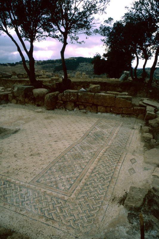 Jordan. Tall Mar Elias, Church of Saint Elijah, main church, multi-colored mosaic floor of floral and geometric designs