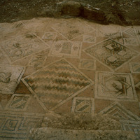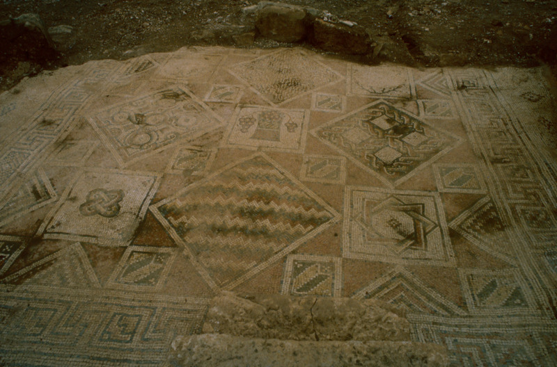 Jordan. Tall Mar Elias, Church of Saint Elijah, main church, multi-colored mosaic floor of floral and geometric designs