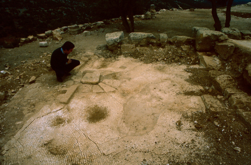 Jordan. Tall Mar Elias, Church of Saint Elijah, main church, mosaic floor