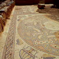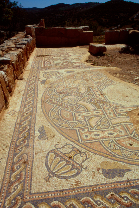 Jordan. Tall Mar Elias, Church of Saint Elijah, main church, multi-colored mosaic floor of floral and geometric designs