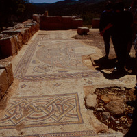 Jordan. Tall Mar Elias, Church of Saint Elijah, main church, multi-colored mosaic floor of floral and geometric designs