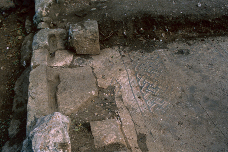 Jordan. Tall Mar Elias, Church of Saint Elijah, main church, multi-colored mosaic floor of geometric designs