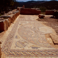 Jordan. Tall Mar Elias, Church of Saint Elijah, main church, multi-colored mosaic floor of geometric designs