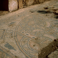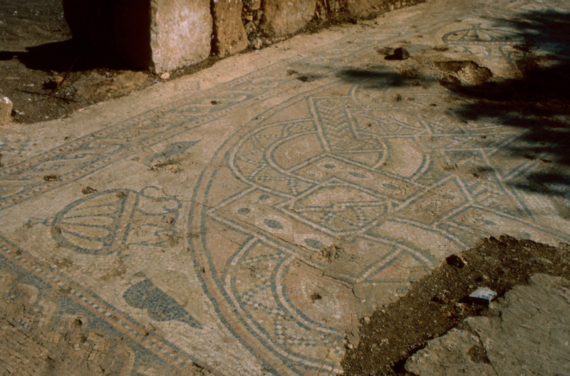 Jordan. Tall Mar Elias, Church of Saint Elijah, main church, multi-colored mosaic floor of geometric designs
