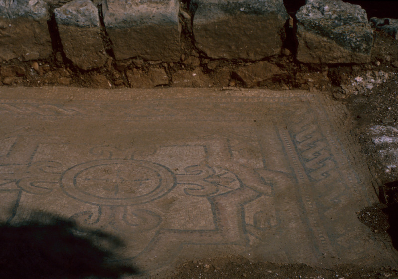 Jordan. Tall Mar Elias, Church of Saint Elijah, main church, multi-colored mosaic floor of geometric designs