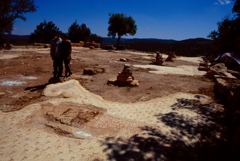 1. An inscription on the mosaic floor of the church faces its west entrance. It is in white letters on a red background and displays an invocation to Saint Elijah. It asks the saint to bless Saba, the presbyter, and his wife. AD 622. (MacDonald, 2010)