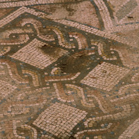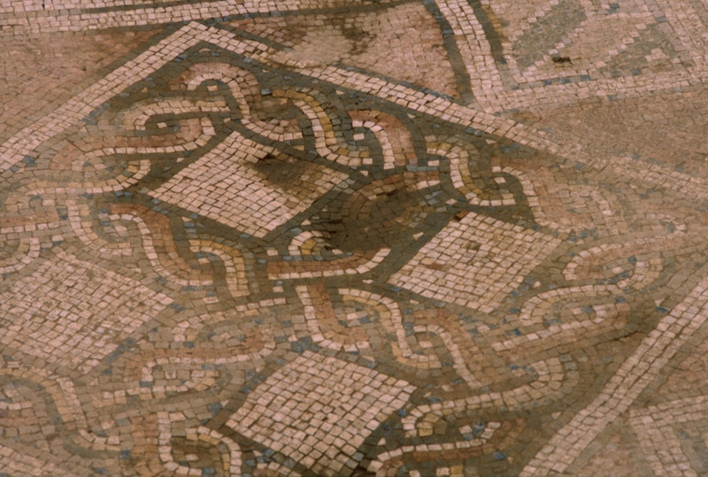 Jordan. Tall Mar Elias, Church of Saint Elijah, main church, multi-colored mosaic floor of geometric designs