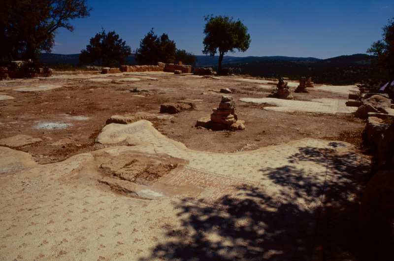 Jordan. Tall Mar Elias, Church of Saint Elijah, main church, multi-colored mosaic floor of floral and geometric designs