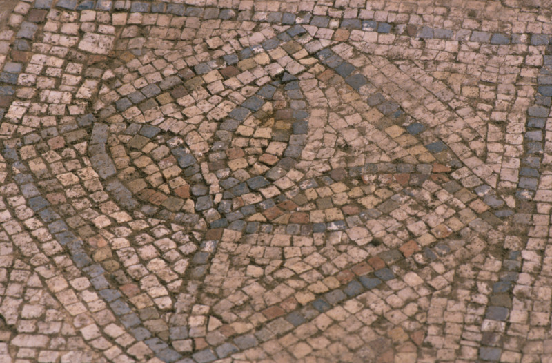 Jordan. Tall Mar Elias, Church of Saint Elijah, main church, multi-colored mosaic floor of floral