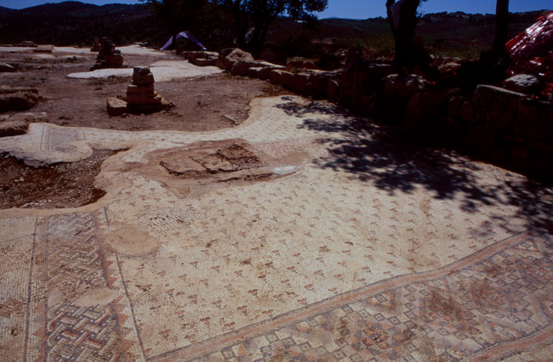 Jordan. Tall Mar Elias, Church of Saint Elijah, main church, multi-colored mosaic floor of floral and geometric designs