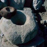 Mortars: Most of the mortars are boulder mortars with a hollowed cup in the center -- Bab edh-Dhra', Early Bronze Age site on the plain southeast of Dead Sea in Jordan, east of Lisan Peninsula. The town area the site includes an open settlement to the south and east and a large cemetery farther to the south. (Meyers, E. "The Oxford Encyclopedia of Archaeology in the Near East" v.1 (1997); p. 248-249.