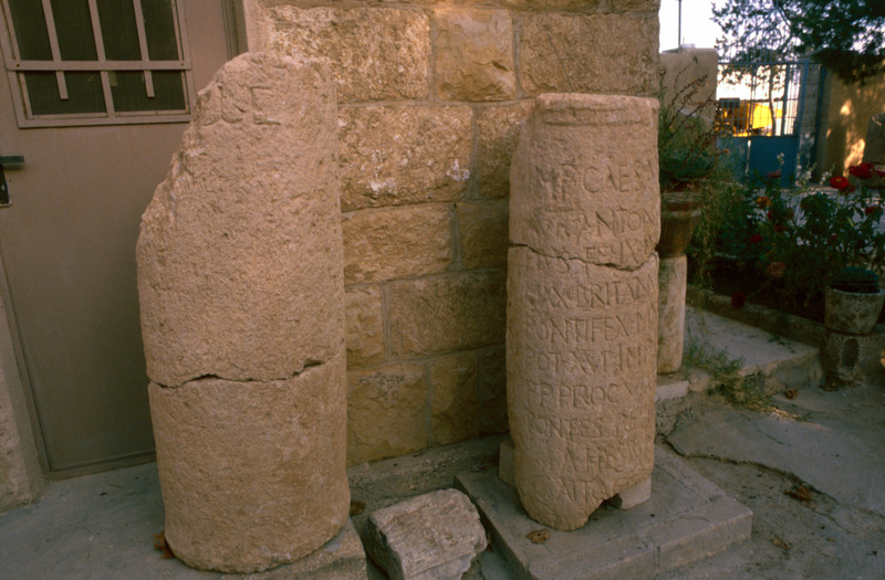 Jordan. Tall Hesban, Roman milestone with weathered inscription