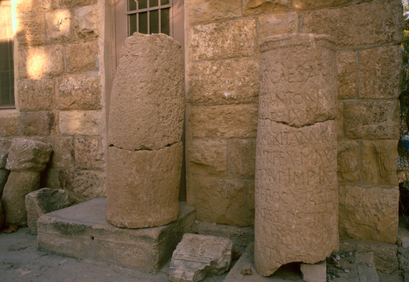 Jordan. Tall Hesban, Roman milestone with weathered inscription