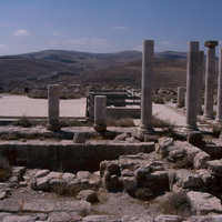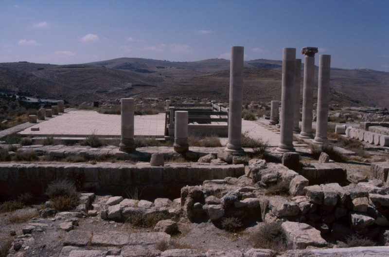 Jordan. Machaerus, Herod's Fort / Palace, Royal courtyard and Herodian columns