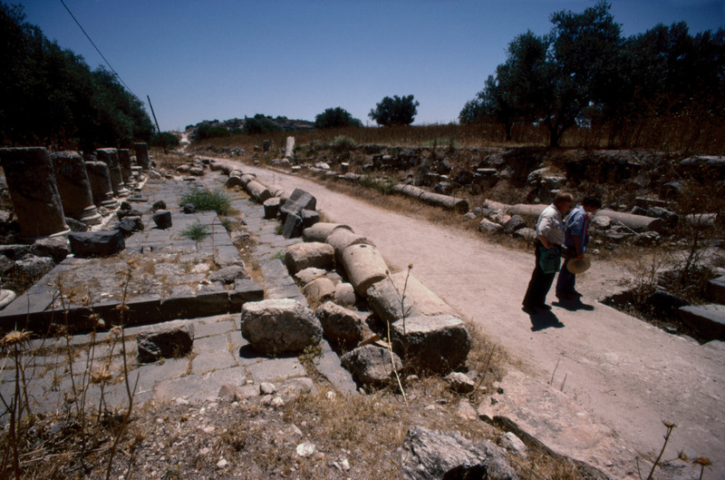 Jordan. Umm Qais (Gadara), the paved and colonnaded main street of Gadara (decumanus maximus)