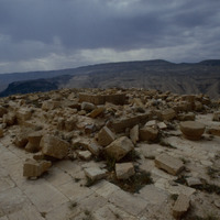 Jordan. Khirbet et-Tannur, view to lower courses of Inner Temenos Enclosure facade