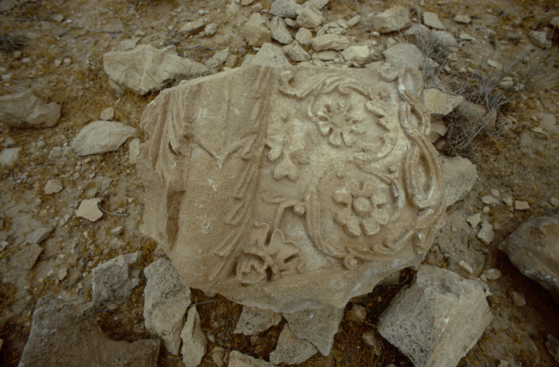 Jordan. Khirbet et-Tannur, weathered floral capital block