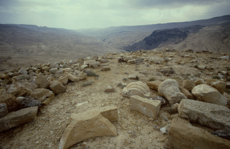 Jordan. Khirbet et-Tannur, remains of colonnade capitals and bases