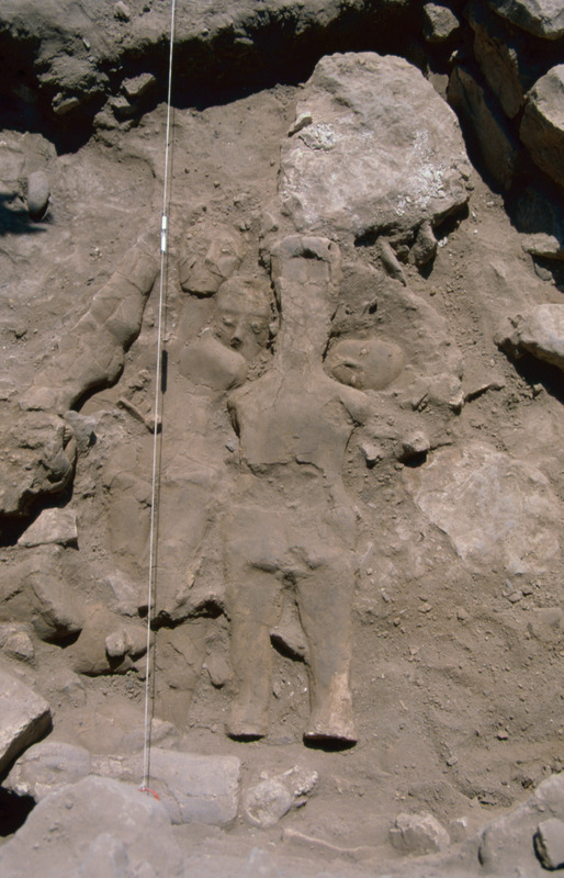 Gary Rollefson […] and Zeidan Kafafi […] were principal investigators […] ‘Ain Ghazal was first occupied around 7200 BC in the Pre-Pottery Neolithic and is one of the largest Neolithic sites in the Levant. Many animal and human figurines were recovered, but what remains the most extraordinary discovery there are the human statues and busts found in two caches: twenty-five in a group found in 1983 and dated to around 6750 B.C. and at least another ten from a slightly later cache discovered in 1985; this one contained three busts with two heads.