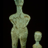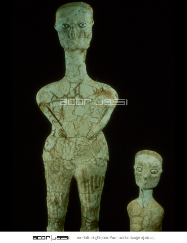 Gary Rollefson […] and Zeidan Kafafi […] were principal investigators […] ‘Ain Ghazal was first occupied around 7200 BC in the Pre-Pottery Neolithic and is one of the largest Neolithic sites in the Levant. Many animal and human figurines were recovered, but what remains the most extraordinary discovery there are the human statues and busts found in two caches: twenty-five in a group found in 1983 and dated to around 6750 B.C. and at least another ten from a slightly later cache discovered in 1985; this one contained three busts with two heads.