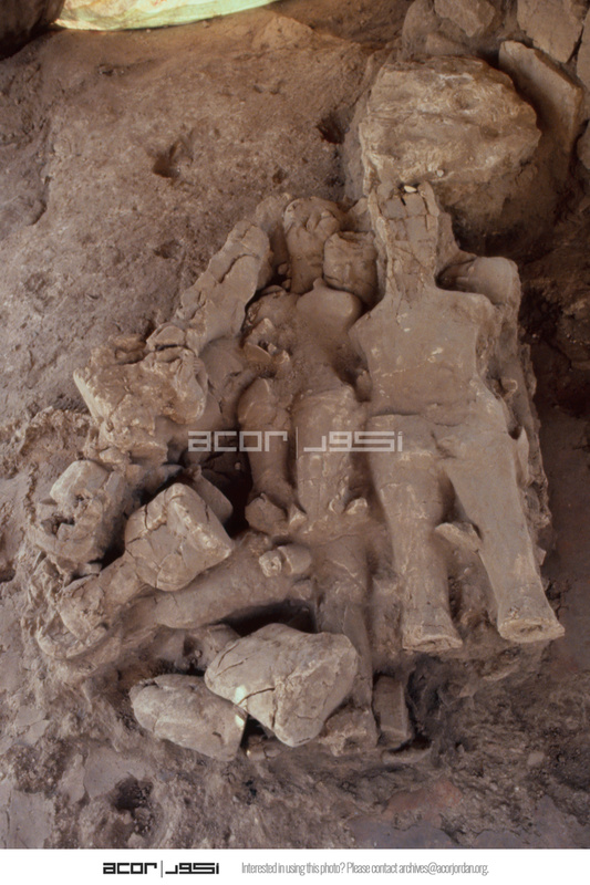 Gary Rollefson […] and Zeidan Kafafi […] were principal investigators […] ‘Ain Ghazal was first occupied around 7200 BC in the Pre-Pottery Neolithic and is one of the largest Neolithic sites in the Levant. Many animal and human figurines were recovered, but what remains the most extraordinary discovery there are the human statues and busts found in two caches: twenty-five in a group found in 1983 and dated to around 6750 B.C. and at least another ten from a slightly later cache discovered in 1985; this one contained three busts with two heads.