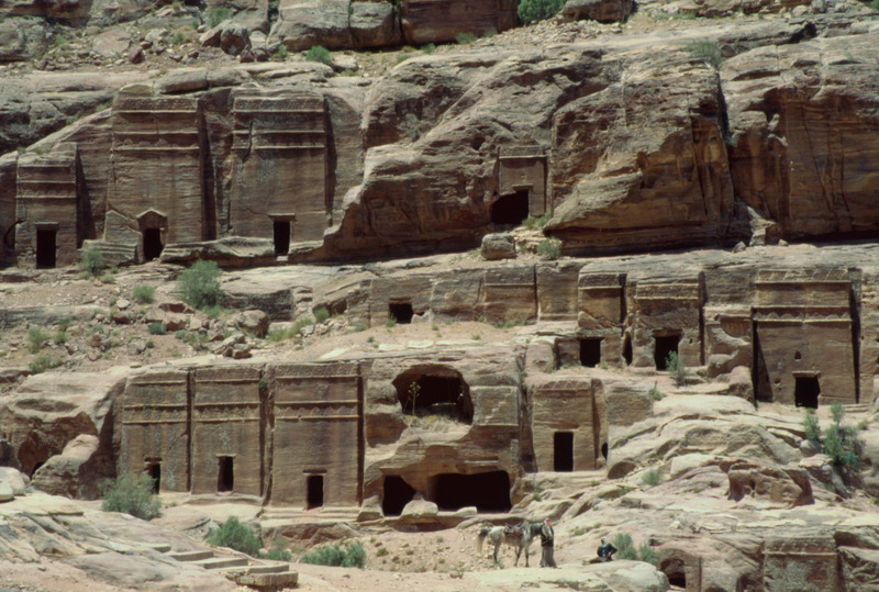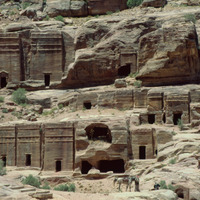 Jordan. Petra. outer Siq, a series of tomb facades in the theater necropolis so neatly lined up that they almost appears to be buildings along a street