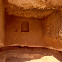 Jordan. Petra, al-Madras, niche (above), rock-cut reservoir (below)