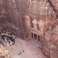 Jordan. Petra, Khaznet Far'oun (Treasury), aerial